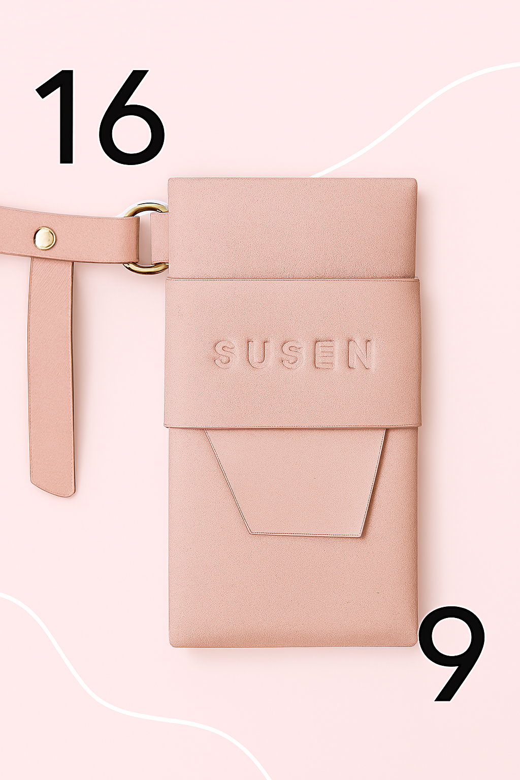 دیگری با ابعاد ۱۶×۹ سانتیمتر و لوگوی برجسته SUSEN، مناسب برای موبایلهای کوچک، پول نقد و لوازم آرایشی