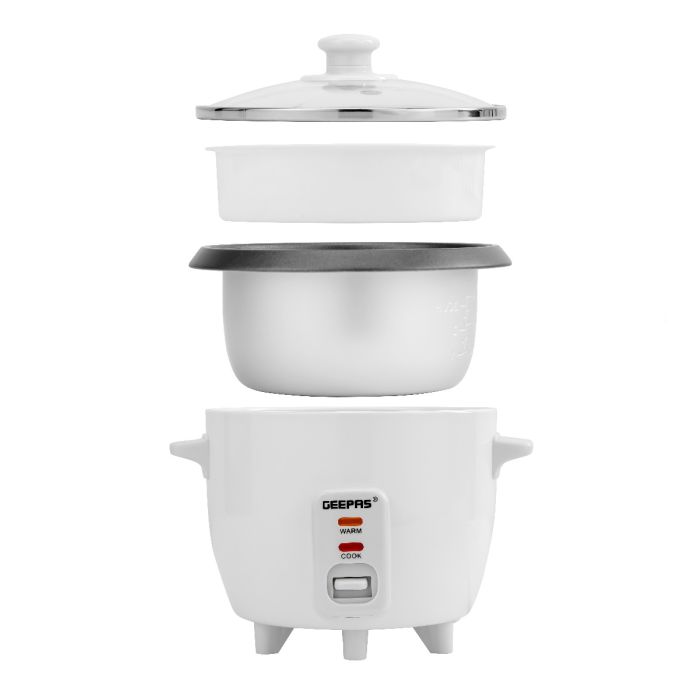 سریع و کارآمد است. با این پلوپز ظرفیتی برای خانواده ظروف برنج پفکی درست کنید. قابلمه داخلی نچسب EASY CLEAN - قابلمه داخلی قابل جابجایی از مواد نچسب ساخته شده است. غذا به ته نمی چسبد و تمیز کردن و نگهداری آن بسیار آسان است. عملکرد ساده - عملکرد ساده روشن/خاموش با عملکرد مفید گرم نگه داشتن - چراغ های نشانگر به شما اطلاع می دهند که کدام عملکرد در حال استفاده است. با استفاده از پلوپز چندمنظوره Geepas انواع غذاهای متنوع را به راحتی تهیه کنید.