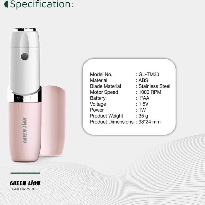 منبع تغذیه یک عدد باتری قلمی سرعت موتور 1000 دور در دقیقه تکنولوژی اصلاح برش چرخشی دوست دار پوست و بدون آسیب جنس تیغه استیل ضد زنگ طراحی ارگونومیک